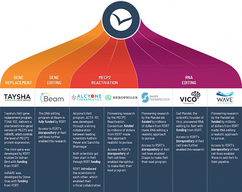 By aggressively investing in six genetic solutions to Rett and simultaneously putting in place the necessary initiatives, RSRT has laid a strong foundation for companies to add Rett syndrome to their disease pipeline.