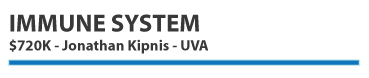 We have also awarded funding of $720K to the lab of Jonathan Kipnis at the University of Virginia. Kipnis and colleagues hope to gain better understanding of the immune system’s involvement in Rett by analyzing patient blood. The hope is that immune-based therapies can be developed.