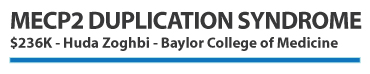 We are also supporting Huda Zoghbi’s work to explore whether symptoms of the MECP2 Duplication Syndrome can be reversed once the protein level is normalized. $236K was awarded to this project via the MECP2 Duplication Syndrome Fund through the fundraising efforts of the duplication/triplication families.